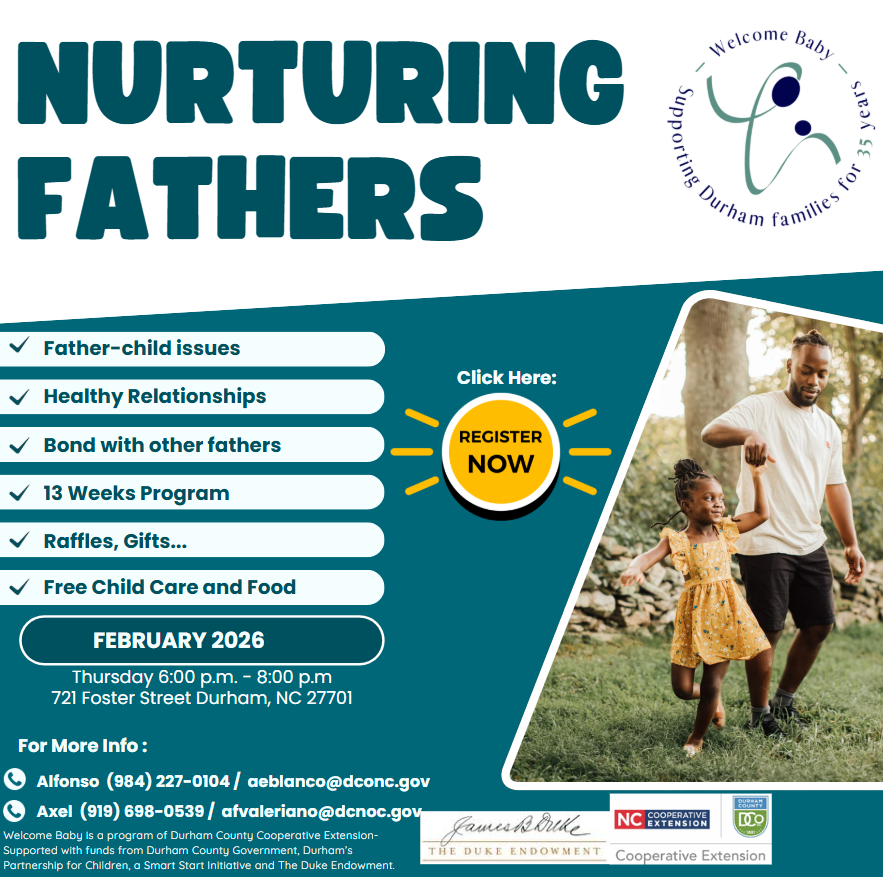 This program is open to Durham County fathers with children ages 0–17 who want to learn, grow, and connect with other dads in a welcoming environment.